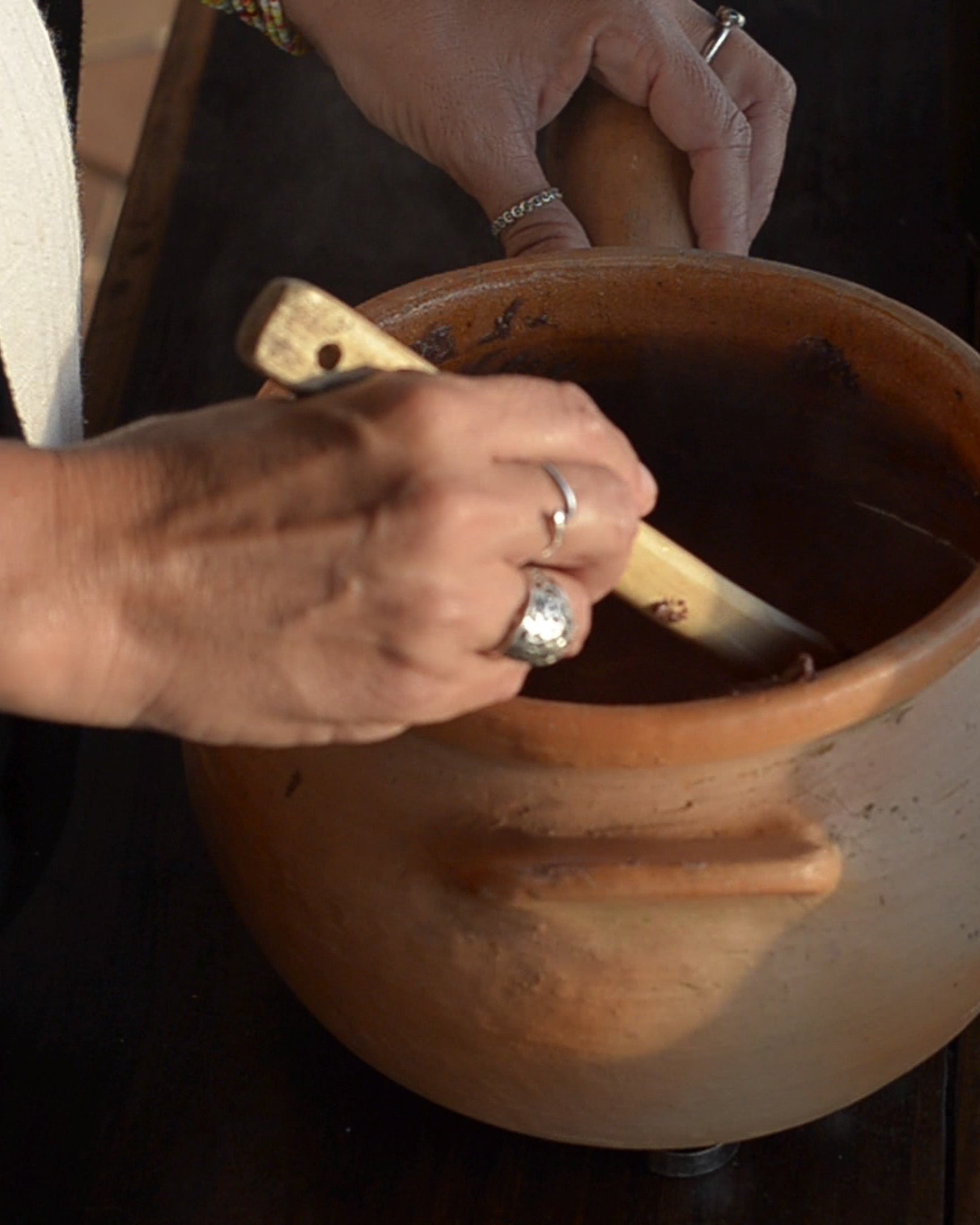 porque o cacau, associado a um ritual, é uma viagem interior, uma oportunidade de sentir a nós mesmos e nossa conexão com a terra. Reservar um momento para si mesmo significa encontrar a beleza de fazer uma pausa no aqui e agora. Neste mundo acelerado, esse ritual nos oferece a chance de nos conectarmos com a terra e deixar o dia a dia para trás por alguns minutos.